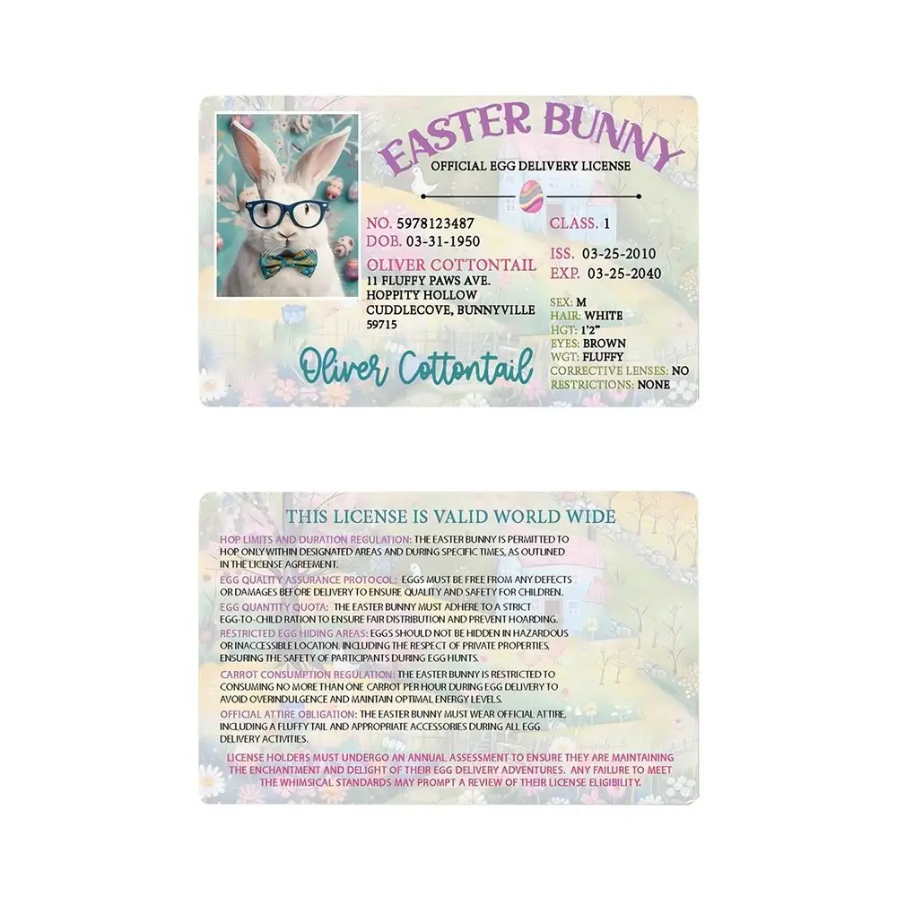 Novelty Plastic Easter Bunny Card Bunny Lost Driver's License DIY Easter Rabbit Card Easter Bunny ID Pass Plate Gifts